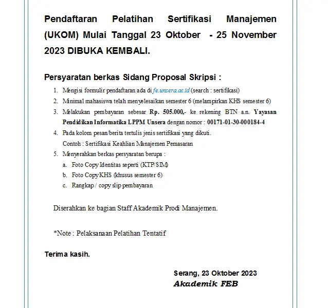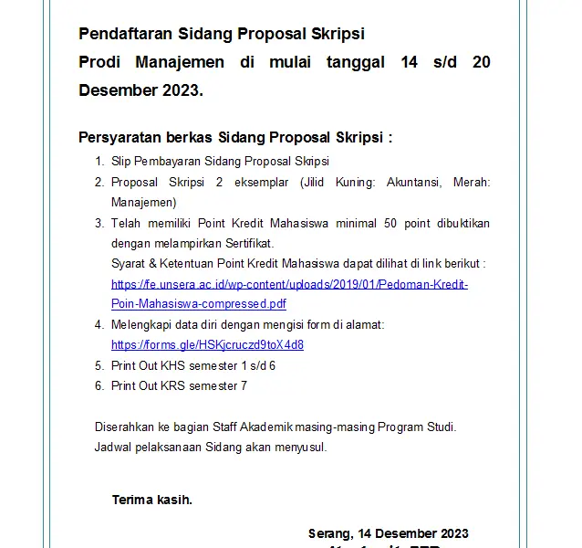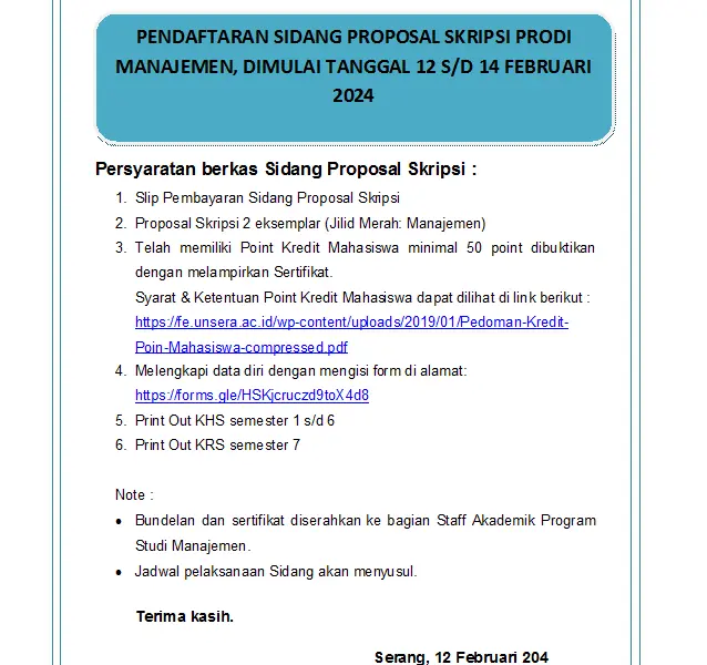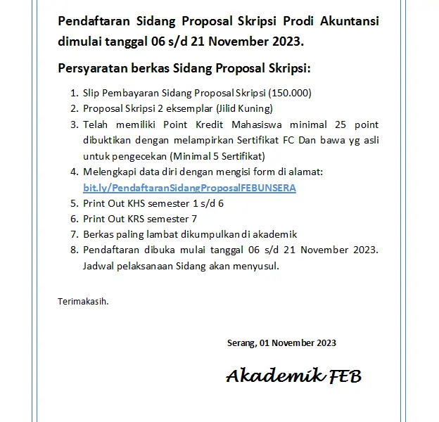 Read MoreKlik disini: bit.ly/PendaftaranSidangProposalFEBUNSERA