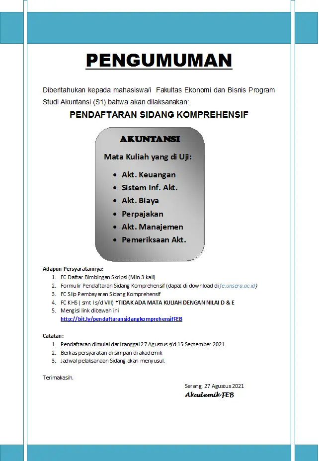 PENGUMUMAN PENDAFTARAN SIDANG KOMPRE AKUNTANSI GEL. 2