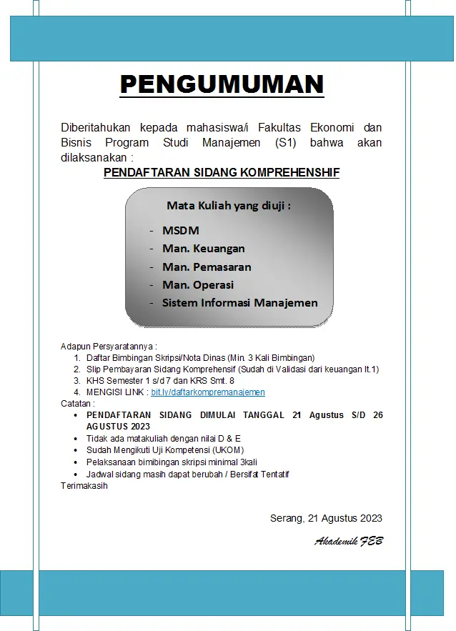 PENGUMUMAN PENDAFTARAN SIDANG KOMPRE MANAJEMEN T.A. 2022-2023 GENAP GEL. 2