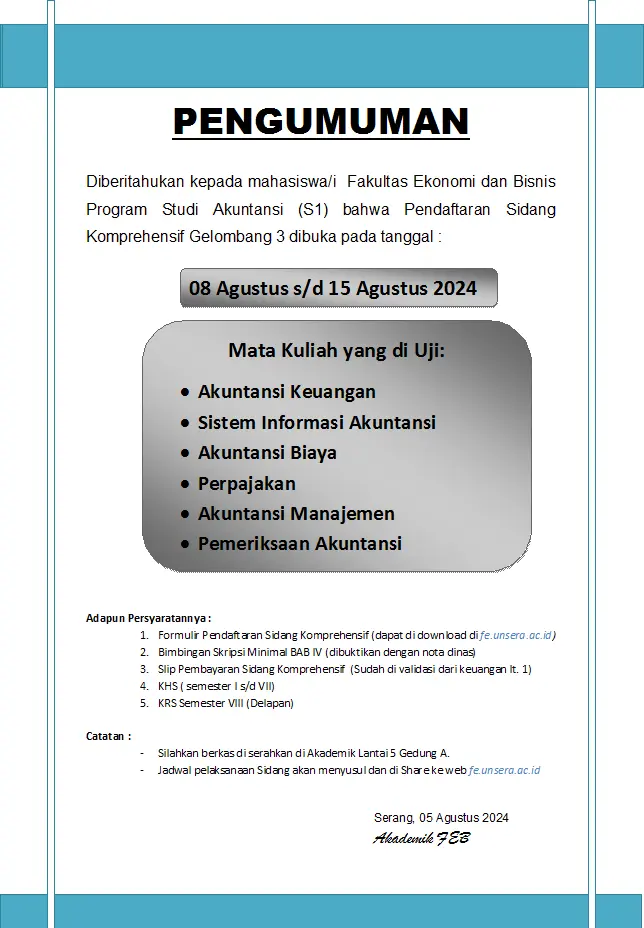 PENGUMUMAN PENDAFTARAN SIDANG KOMPREHENSIF GEL 3 AKUNTANSI T.A. 2023-2024 GENAP