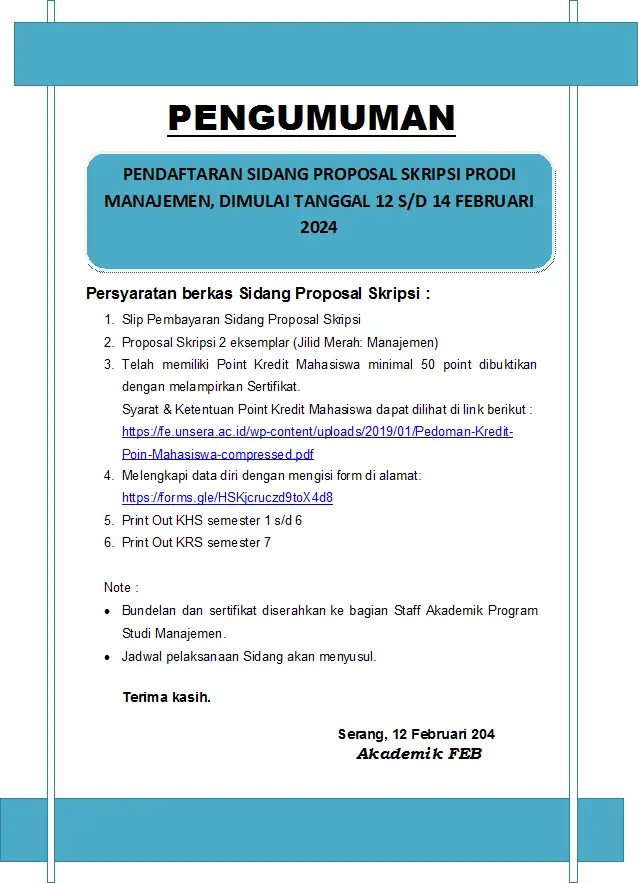 PENGUMUMAN PENDAFTARAN SIDANG PROPOSAL SKRIPSI MANAJEMEN T.A. 2023/2024