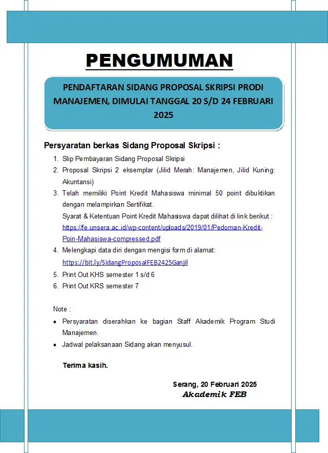 LINK PENDAFTARAN : https://bit.ly/SidangProposalFEB2425Ganjil
